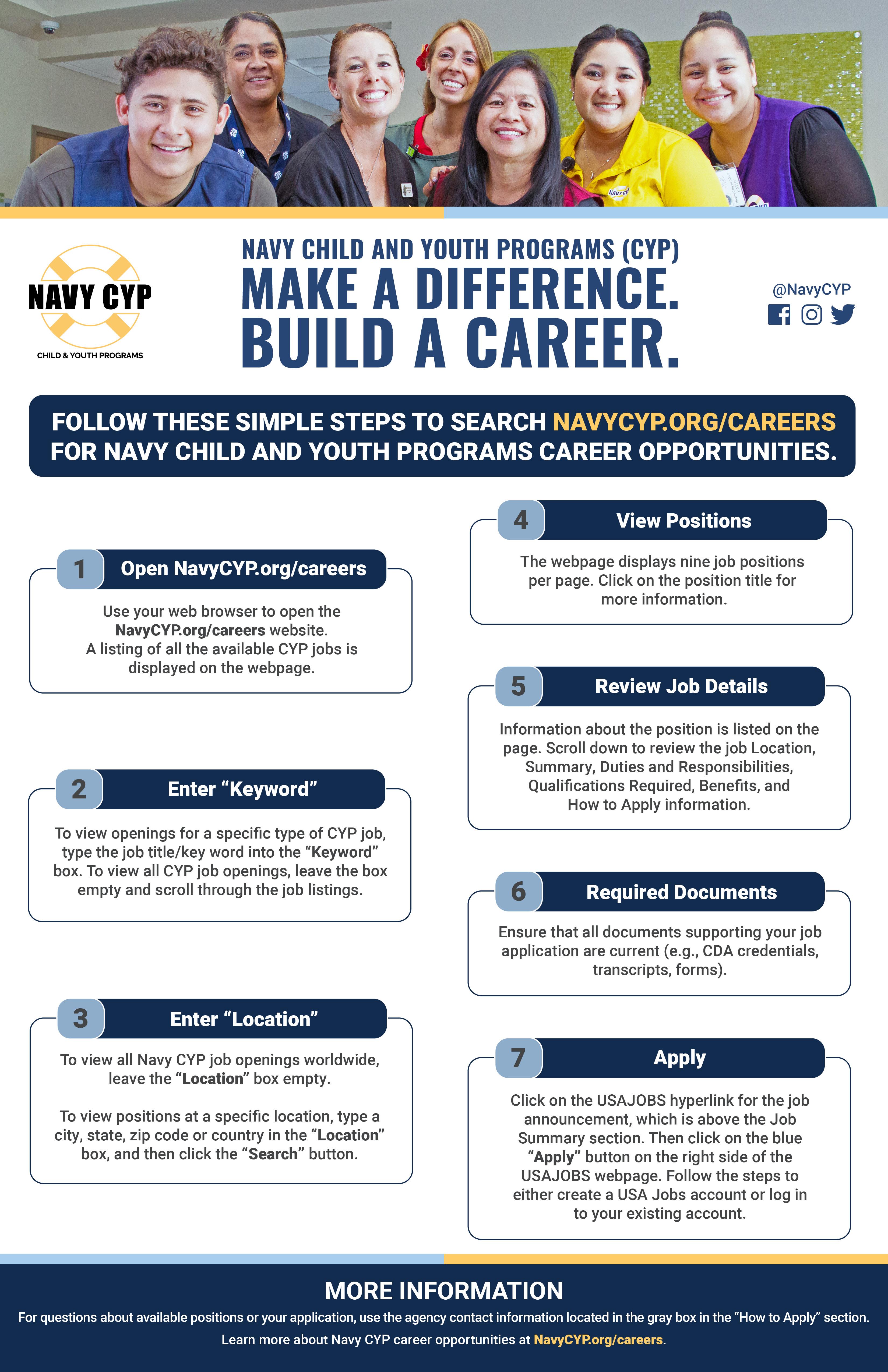 Need help navigating, searching and applying for Navy CYP career opportunities, click here for a step-by-step guide.